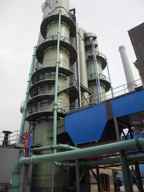 脫硫脫硝設備涉及一種對煙氣中SO2、NOX、重金屬在一個設備內(nèi)脫除的新工藝,該工藝采用堿、氧化鈣和氨水、雙氧水的組合吸收液進行吸收污染物,并生成硫酸銨和硝酸銨副產(chǎn)品,做為農(nóng)用化肥使用。其裝置包括一個核心設備—