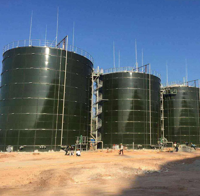 電泳鋼板是采用特制鋼板加工后,經(jīng)過酸洗、磷化、電泳等多重處理后,在進(jìn)行特殊防腐工藝處理,電泳涂層形成的保護(hù)層不僅能阻止腐蝕,而且具有較強(qiáng)的抗酸堿功能,電泳涂層同樣具有強(qiáng)的抗磨損性。電泳鋼板之間的拼接采用上下左右相互搭接并用自鎖螺栓連接形式。高分子復(fù)合密封膠密封材料鑲嵌在兩板重疊之間,固化之后即為橡膠,具有高彈性,耐高寒,耐候性強(qiáng)等特點(diǎn)。自鎖螺栓頂部用塑料包裹,具有強(qiáng)的耐腐蝕性,螺栓根部有是四榫裝置,具有自鎖功能。這種裝配結(jié)構(gòu)到了快速低耗的安裝要求。電泳板耐腐蝕特性非常適合在沼氣能源領(lǐng)域應(yīng)用,罐體電泳鋼板頂蓋可保持5kpa的壓力,罐體也可與一體化雙膜柔性儲(chǔ)氣柜組合,做成發(fā)酵產(chǎn)氣與儲(chǔ)氣一體式裝置。